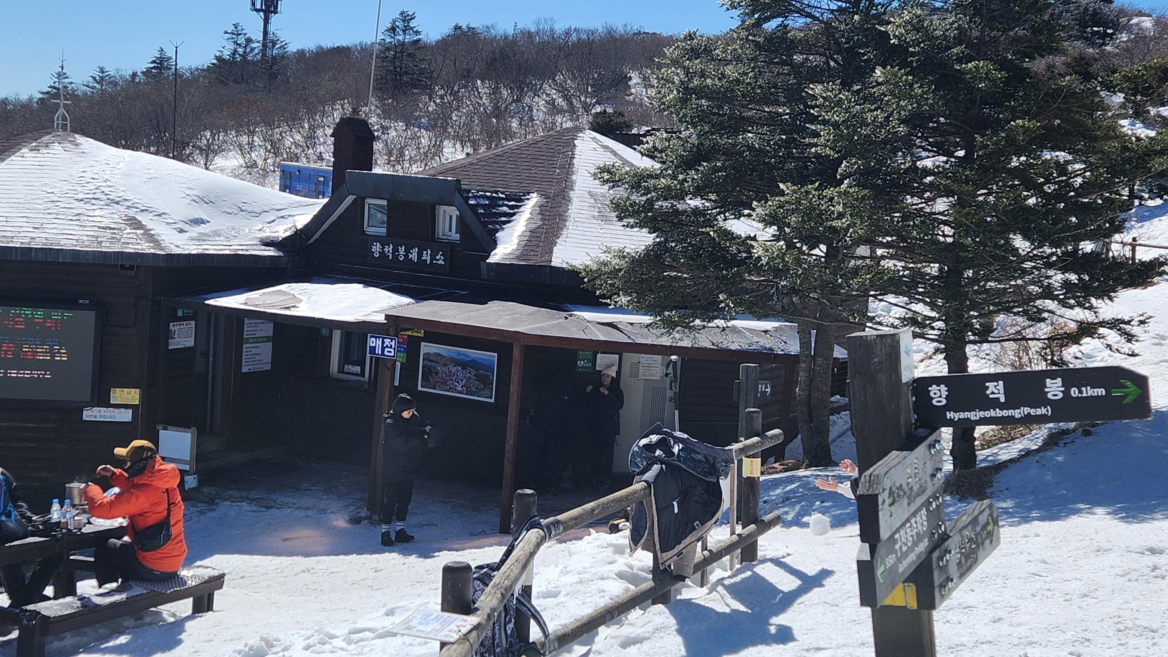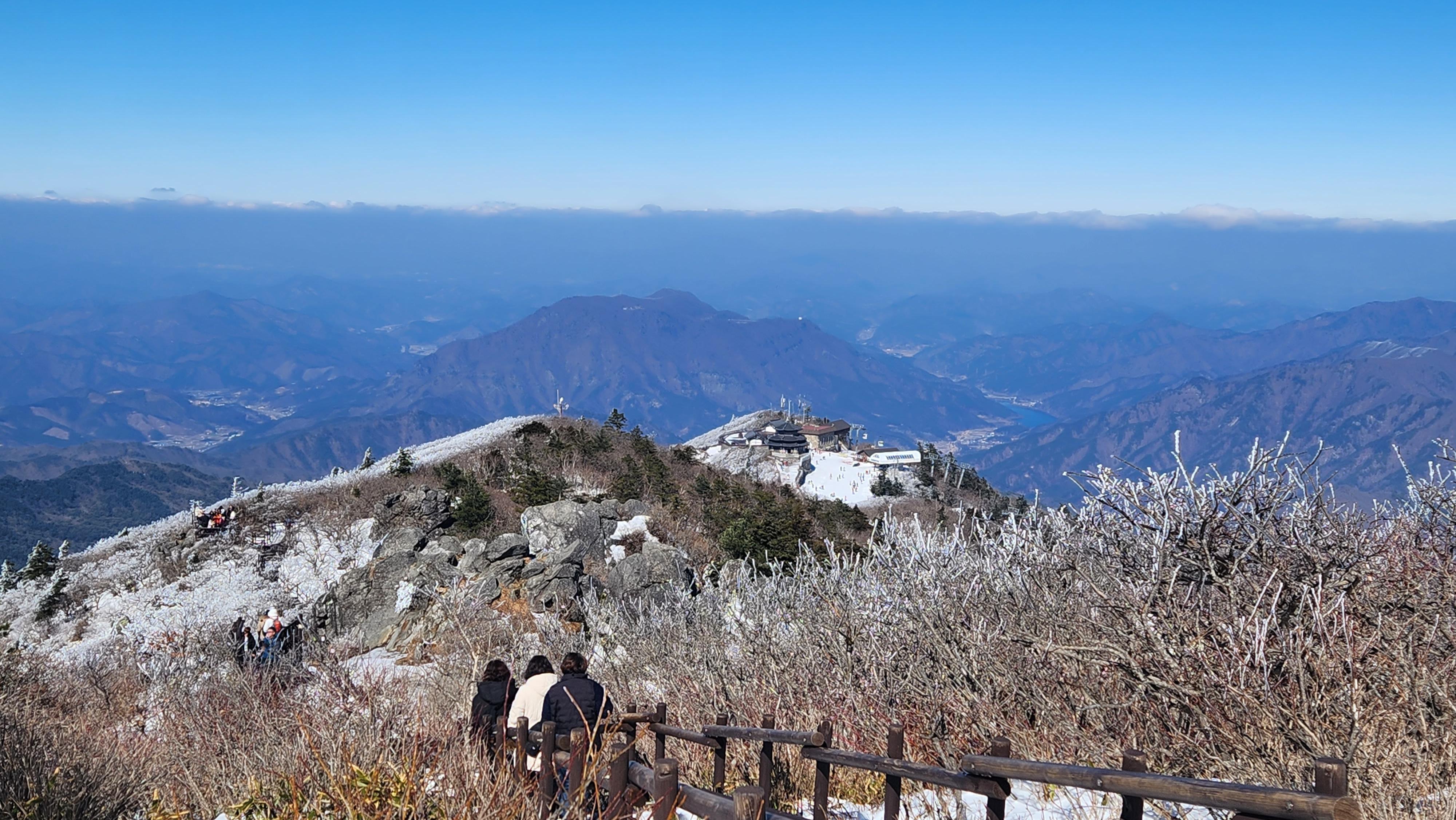 등산팀은 구천동 주차장에서 출발하여 백련사를 거쳐 향적봉 정상에 오른다